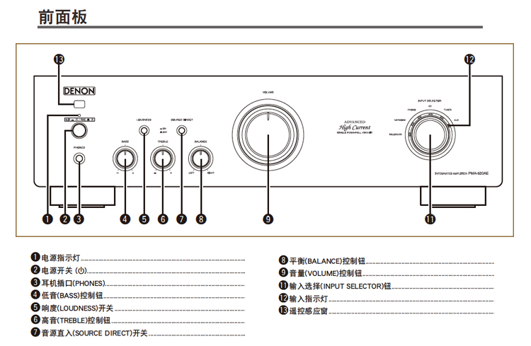 正面:极为简练的机身面板,提供低音、高频与平衡的三项微调,同时带有6.5mm耳机输出接口,节能电源环保设计。 | PMA-520AE集成HC晶体管,电流供给能力相对大。天龙备受称赞的HC单端推免电路沿袭了其高端机型,带有全分离式放大器设计。 |